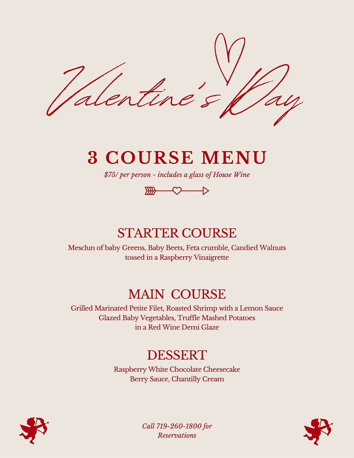 Bring your sweetheart to dinner at The Ascent Restaurant. We are currently offering reservations for February 13th, 14th, & 15th between 5pm-10pm for Valentine's Dinner. Our dinner will consist of three courses with 1 glass of house wine per person. If you're looking to sweeten the deal, you can book a "Be Mine" package through Marriott Colorado Springs that includes your night stay, dinner, a bottle of house wine + glass of house wine per person, and parking all in one! Call 719-260-1800 to book a dinner reservation or with any questions. We look forward to celebrating with you!