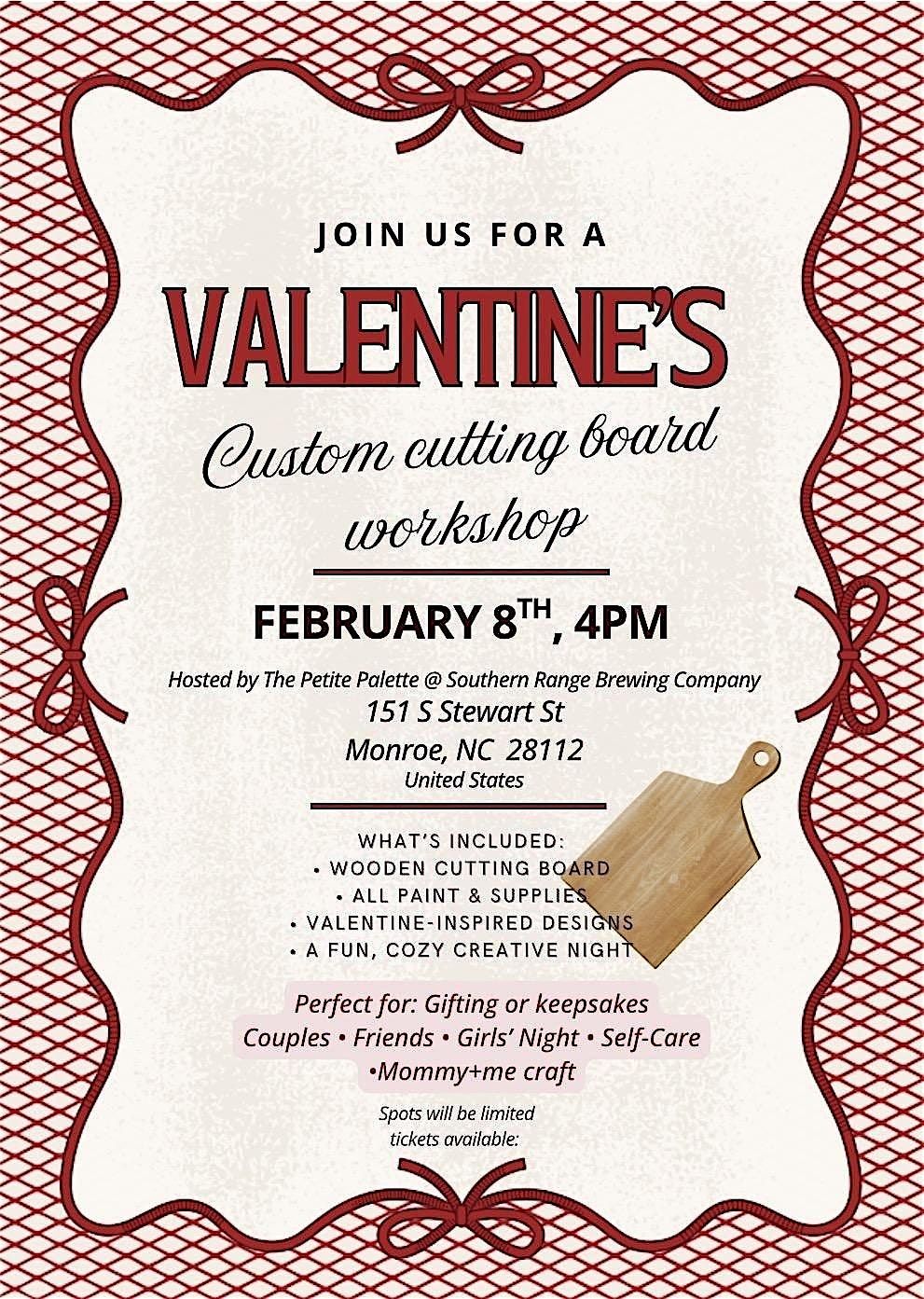 Valentines DIY cutting board workshop
