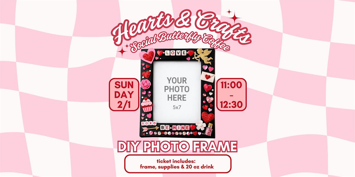 Join us at Social Butterfly Coffee on Sunday, February 1st for a cozy, Valentine’s-themed DIY experience! Create your own decorated 5×7 photo frame - perfect for yourself, your Valentine, or your bestie for Galentine’s Day.