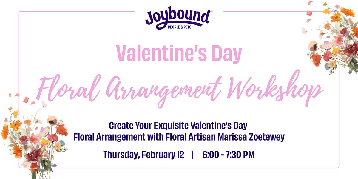 Joybound People & Pets invites you for a Valentine's Day themed Floral Arrangement Workshop with floral artisan Marissa Zoetewey, founder of The Wild Fleur Co.
