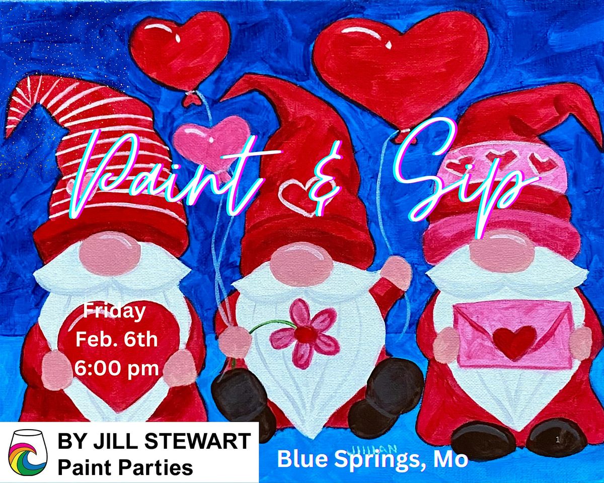 Paint these adorable gnomes for Valentine's Day! All art supplies and instruction are included. I draw the main subject for you. $38/person. Sign up now!