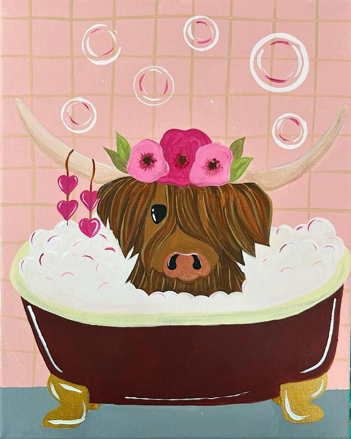 Grab some friends and have fun painting our sweet Miss Honey the Highlander taking a bath! No experience necessary!