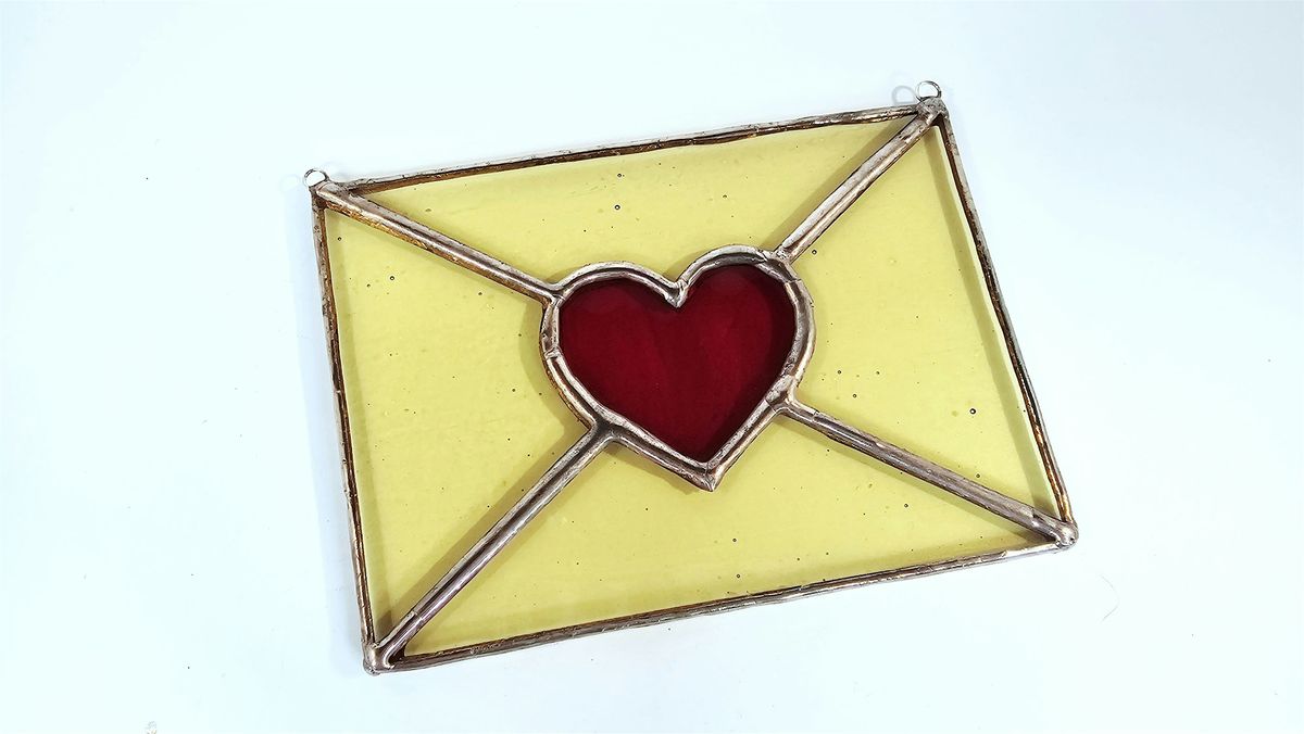 All glass is pre-cut in amber and red. Finished size is 5x3.5." In this class, you'll foil and solder your project together to take home same day.