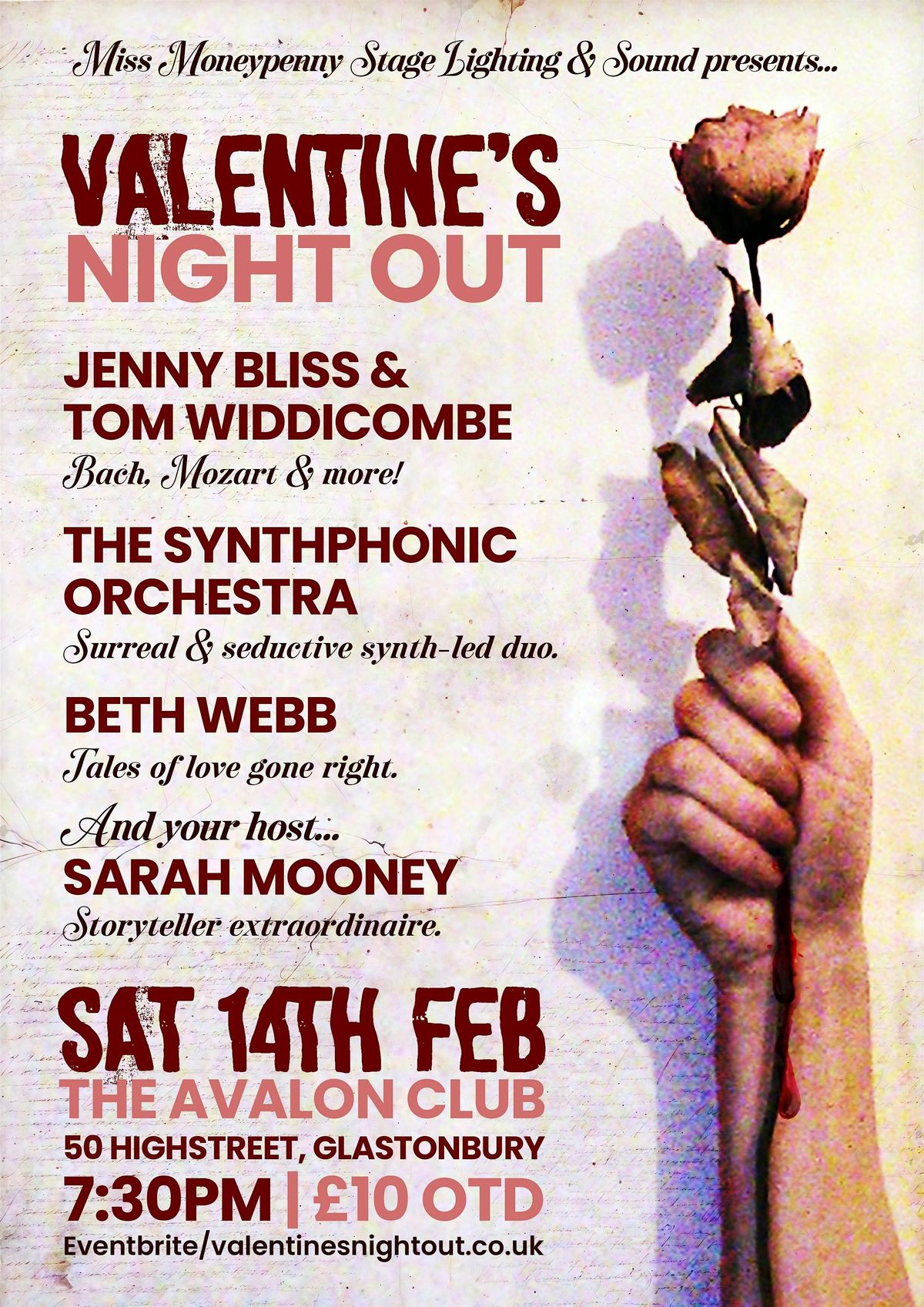 Come and devour an evening of sublime music, poetry and storytelling... We have storyteller extraordinare, Sarah Mooney as our Compare, the multitalented Jenny Bliss Bennett & Tom Widdicombe & the legendary William Kraemer, Beth Webb our in-house storyteller and the much loved local duo The Synthphonic Orchestra! More details to follow... but do be sure to put this in your diary because it's going to be a fabulous night out and everyone will be made to feel most welcome whether you are married, in a relationship, single, an extraterrestrial or just fed up at home! Everyone is welcome here... See you there! x