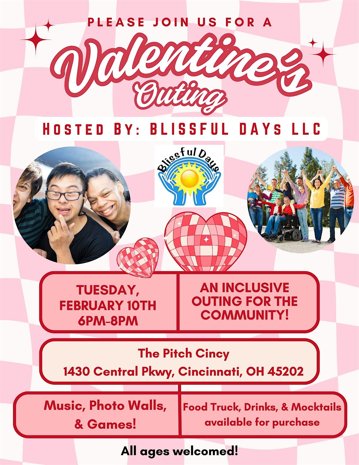 Blissful Days LLC is hosting a Valentine’s Outing on Tuesday, February 10th, from 6:00–8:00 PM, and we would love for you to join us!