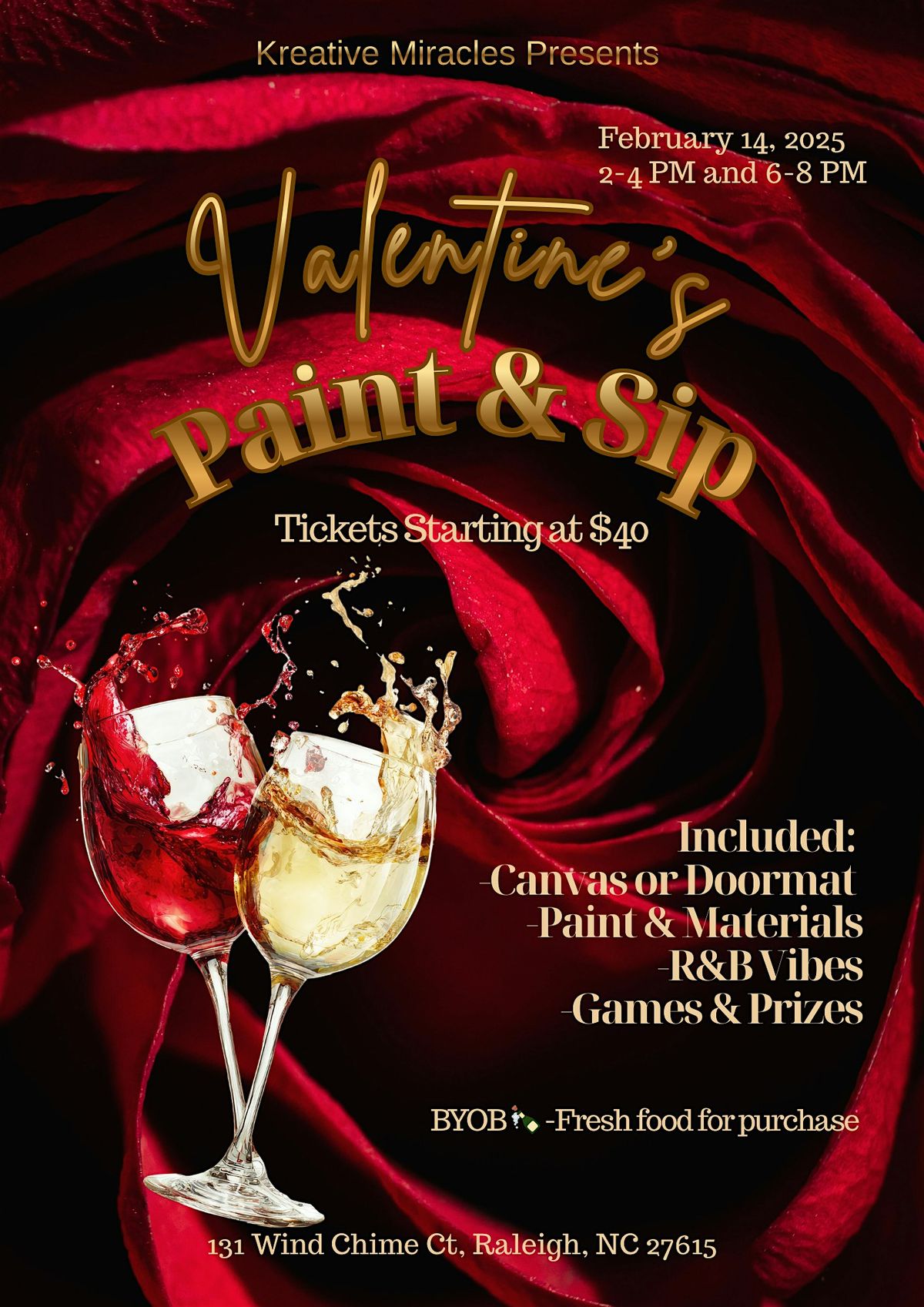 Come celebrate love, creativity, and good vibes this Valentine’s Day at our Valentine’s Paint & Sip, presented by Kreative Miracles. Whether you’re coming with your partner, your bestie, or your favorite plus-one, this is the perfect way to enjoy a fun and relaxing date-night experience.