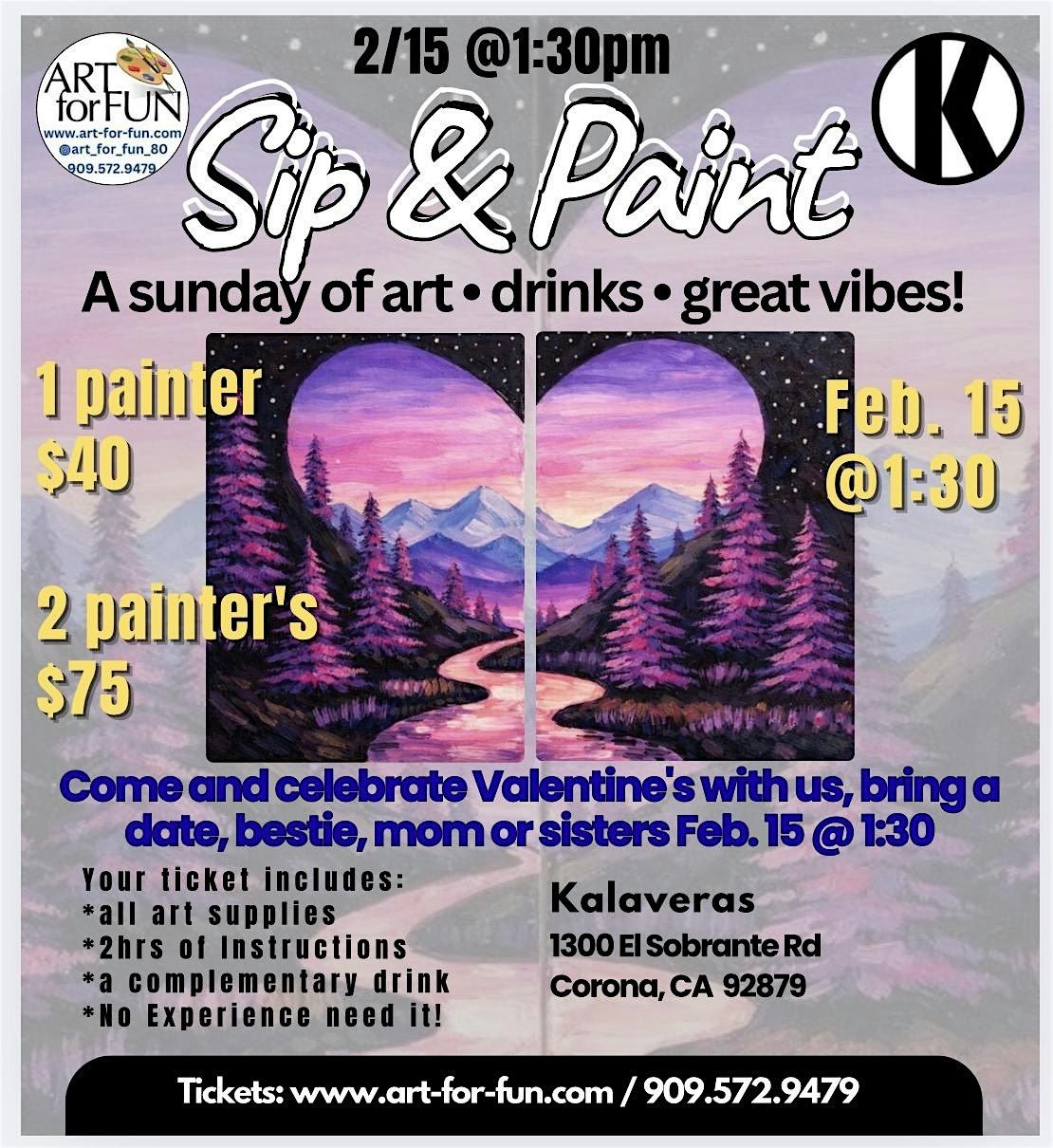 Grab a friend, a sibling or your date and let the good vibes flow! Join us for a lively Sunday of art, drinks, and creativity.