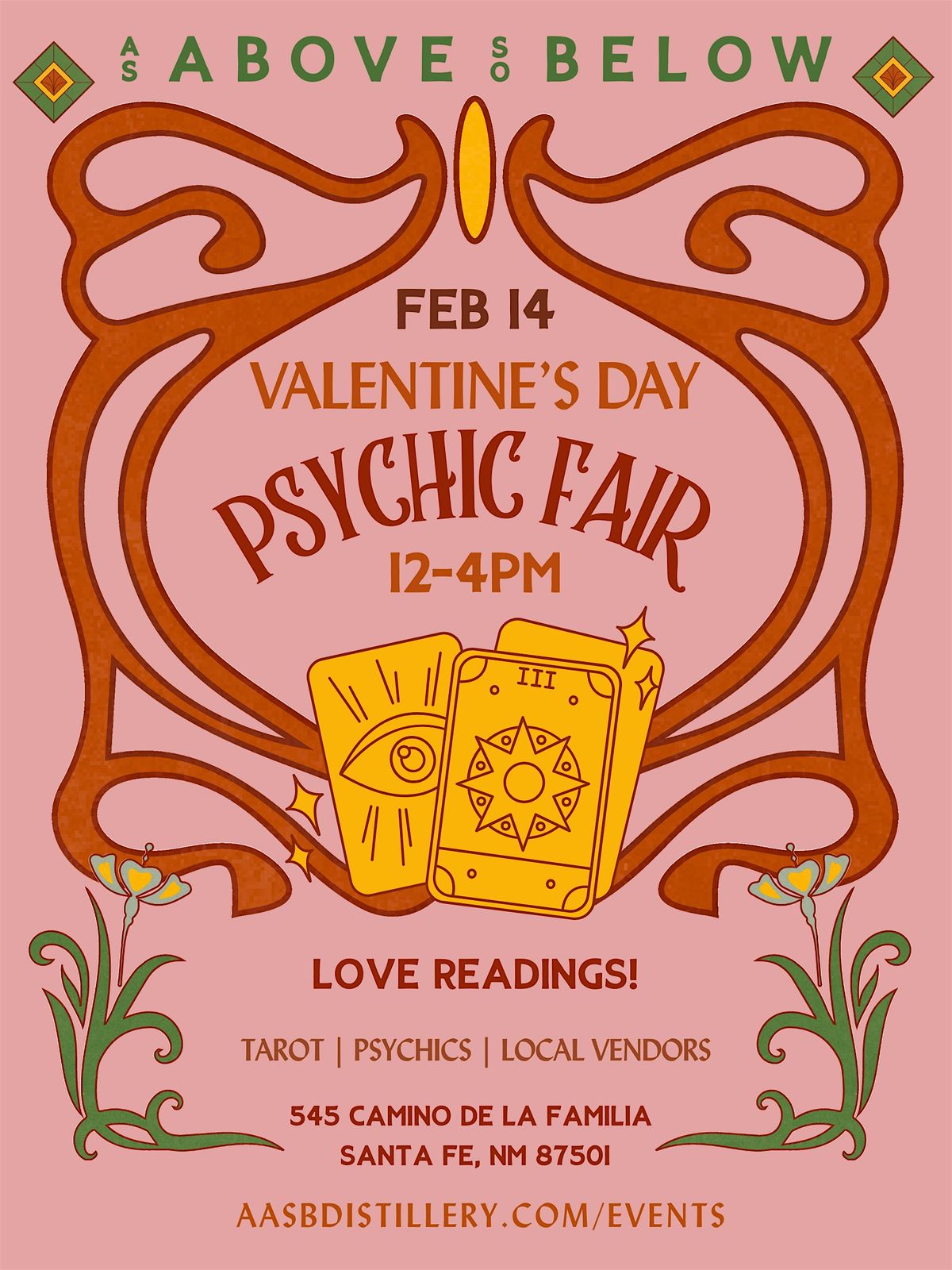 Join us for a Valentine psychic fair focused on love! Get readings from gifted psychics, tarot readers, and intuitives. Come support local vendors that will offer an array of curiosities and novelties.
