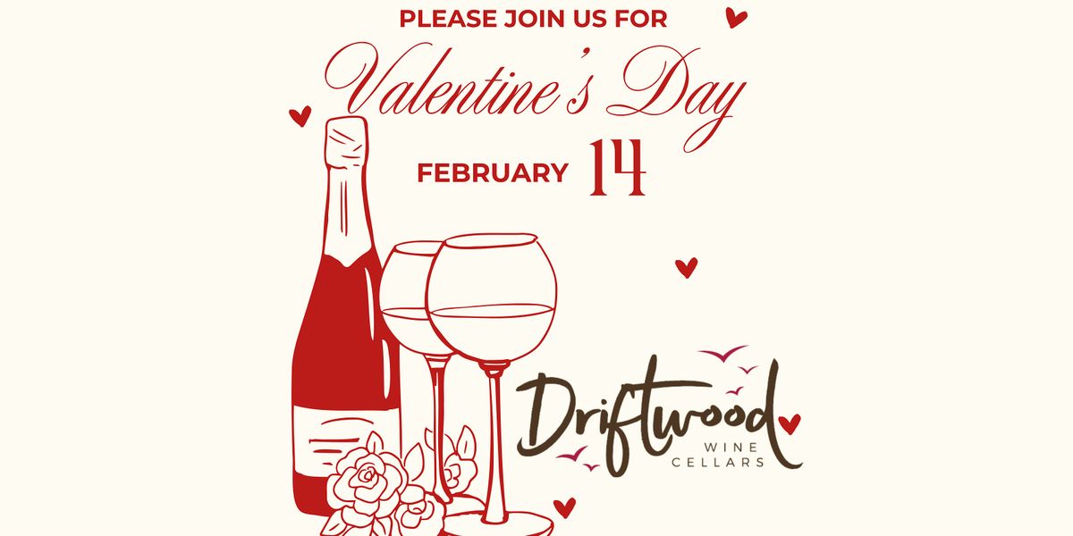 Come celebrate Valentine's Day with us at Driftwood Wine Cellars West! Join us on February 14, 2026 at 12:00 PM for an afternoon or evening filled with delicious wines and sweet treats. It's the perfect way to spend the day with your loved one.