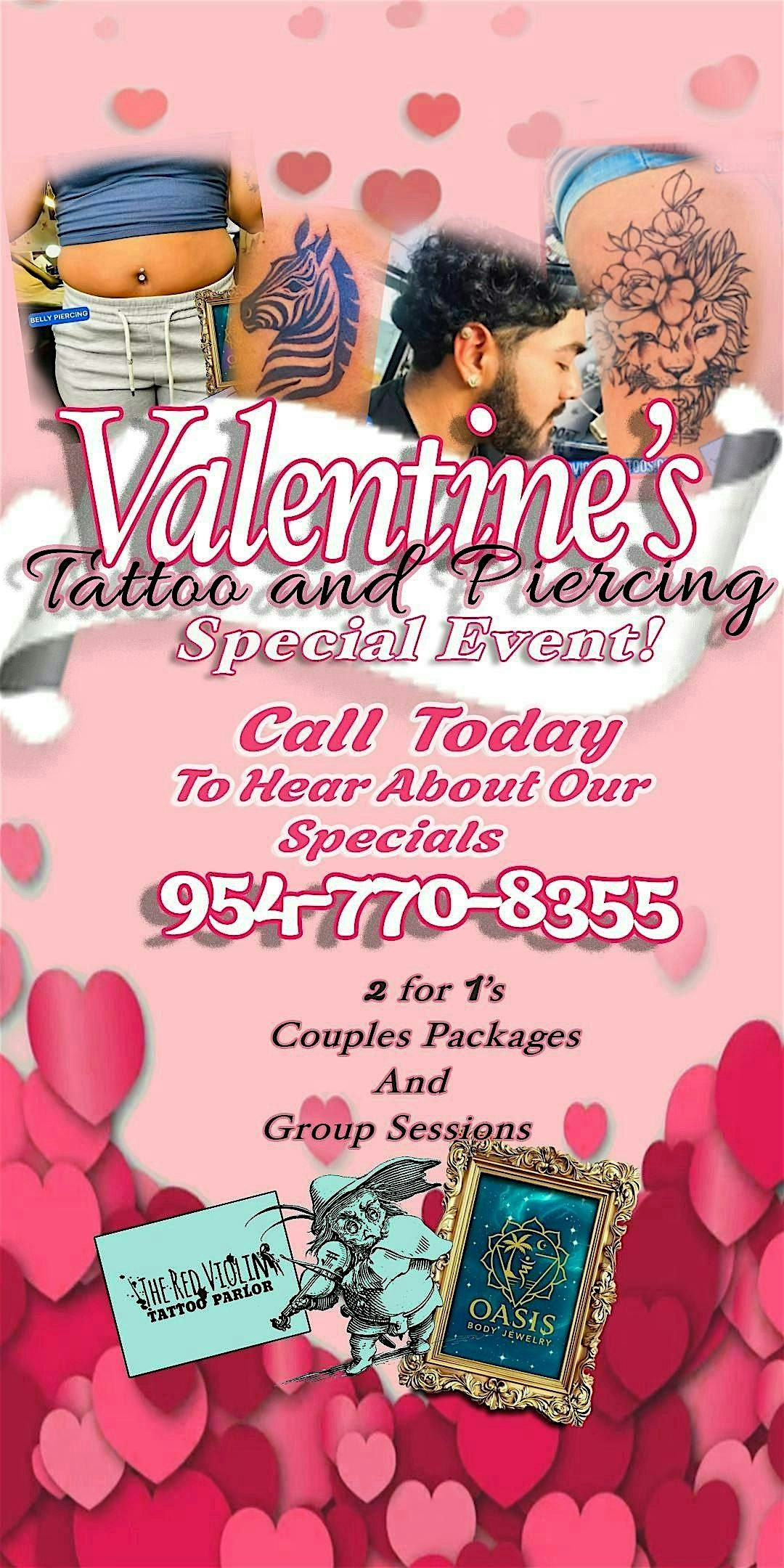 Get ready to express your love in a bold new way! Join us for the Red Violin Valentine's Tattoo & Piercing Sale. Whether you’re thinking about a fresh ink or a sparkling new piercing, this is the perfect chance to make it happen. Bring your friends, feel the vibes, and let’s celebrate love with some awesome body art!