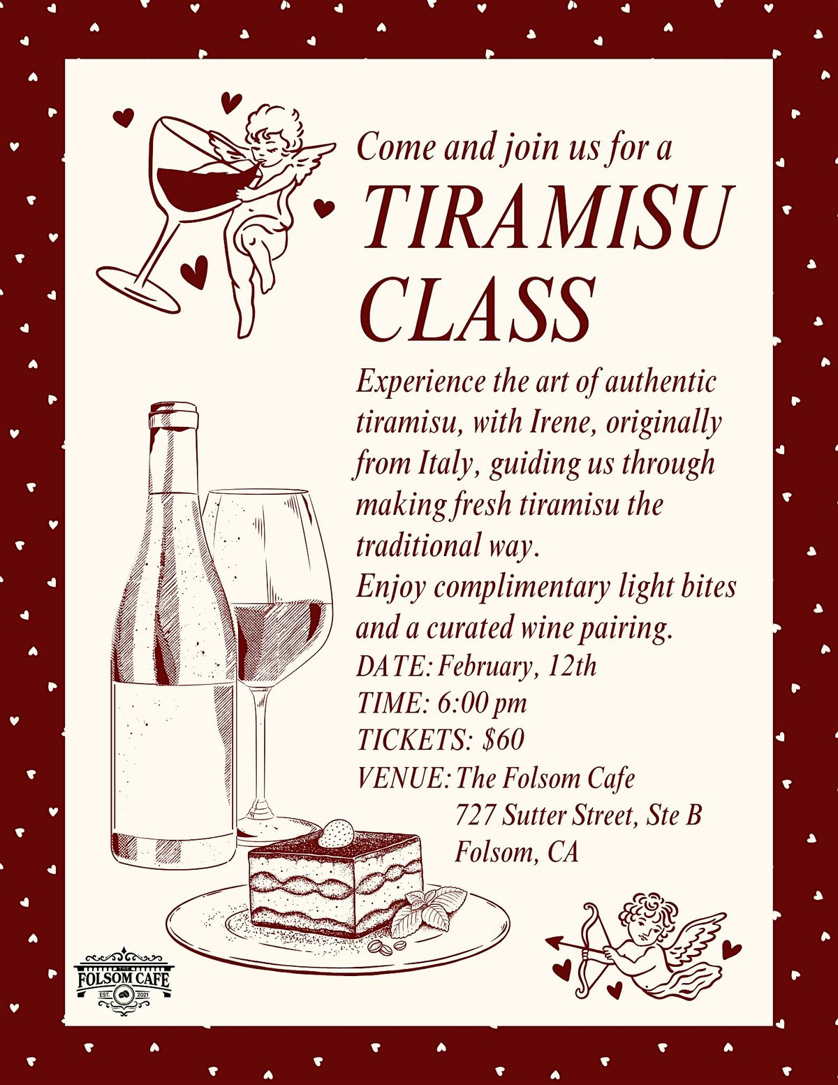 Ready to impress your sweetheart? Join us in person for a fun and laid-back Tiramisu making session just in time for Valentine’s Day! Learn all the tips and tricks to create this classic Italian dessert from scratch. Whether you're a beginner or a pro, this class is the perfect way to share some sweet moments and enjoy delicious treats together. Grab a friend or your special someone and let's get baking!