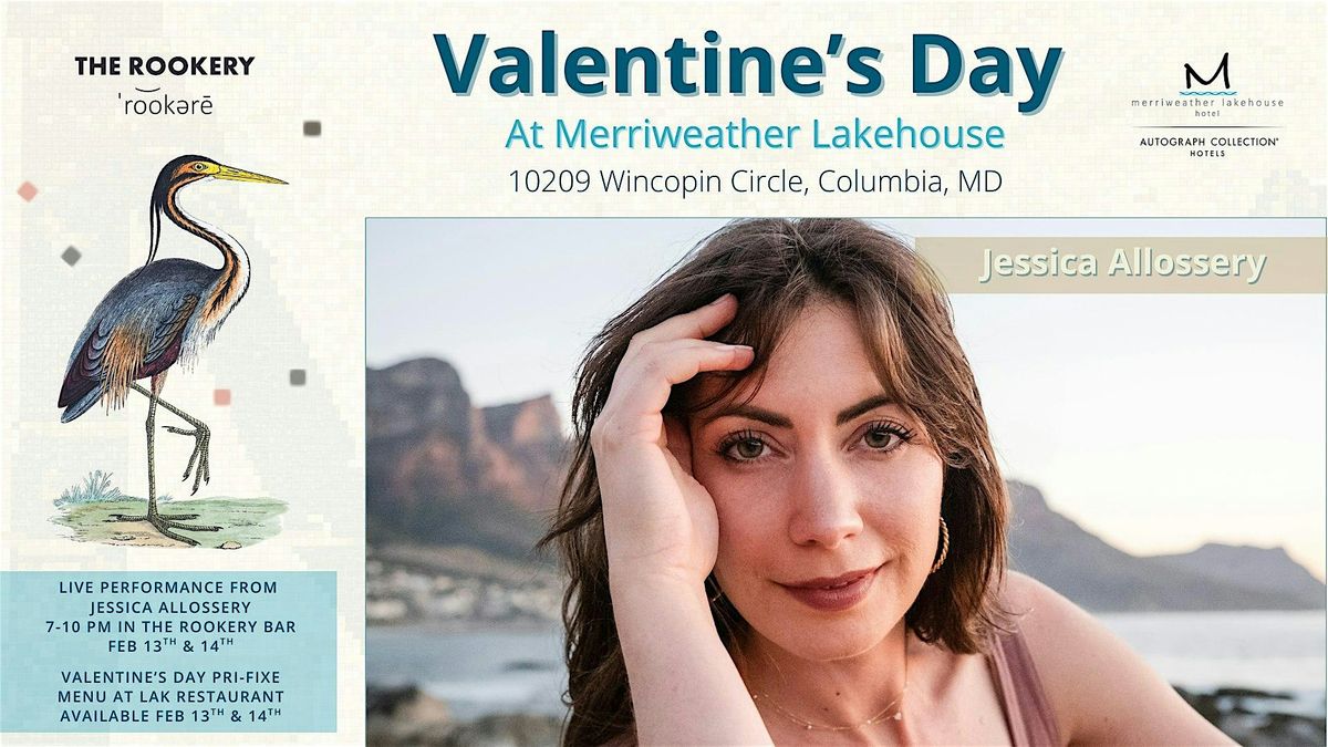 Jessica Allossery will perform on Friday, February 13th and Saturday, February 14th from 7 - 10 p.m.