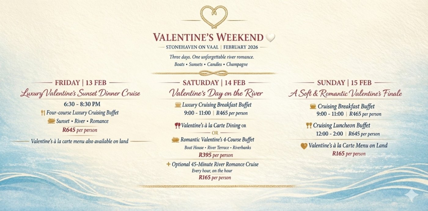 #StonehavenOnVaal #Valentines2026 #RiverRomance #VaalRiver #DateNight #ValentinesWeekend