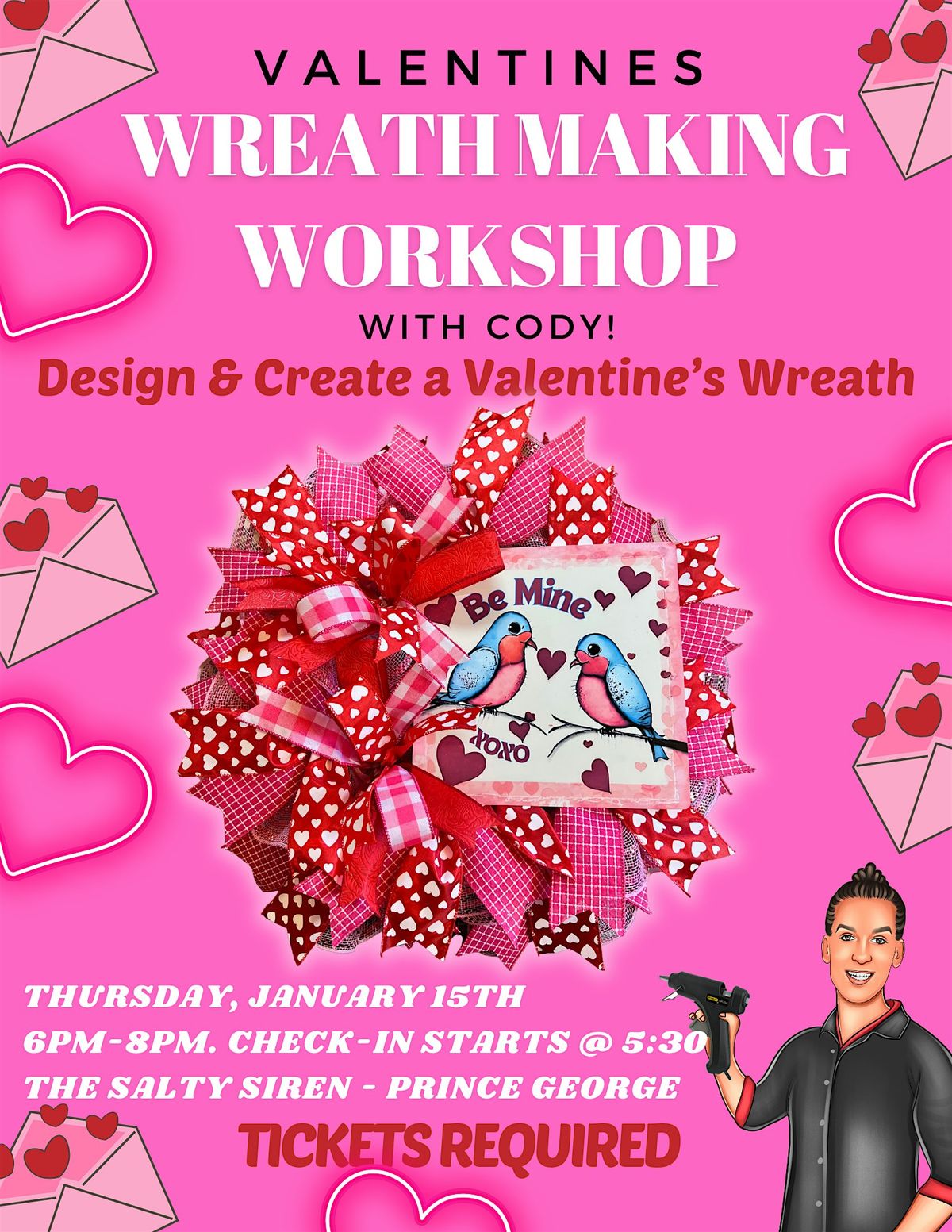 Valentine's Wreath Making Class with Cody at The Salty Siren!