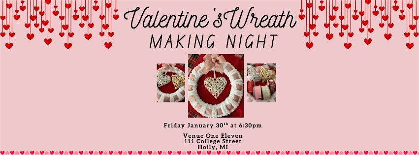 Create your own Valentine’s wreath to take home while enjoying a cozy night out with friends.