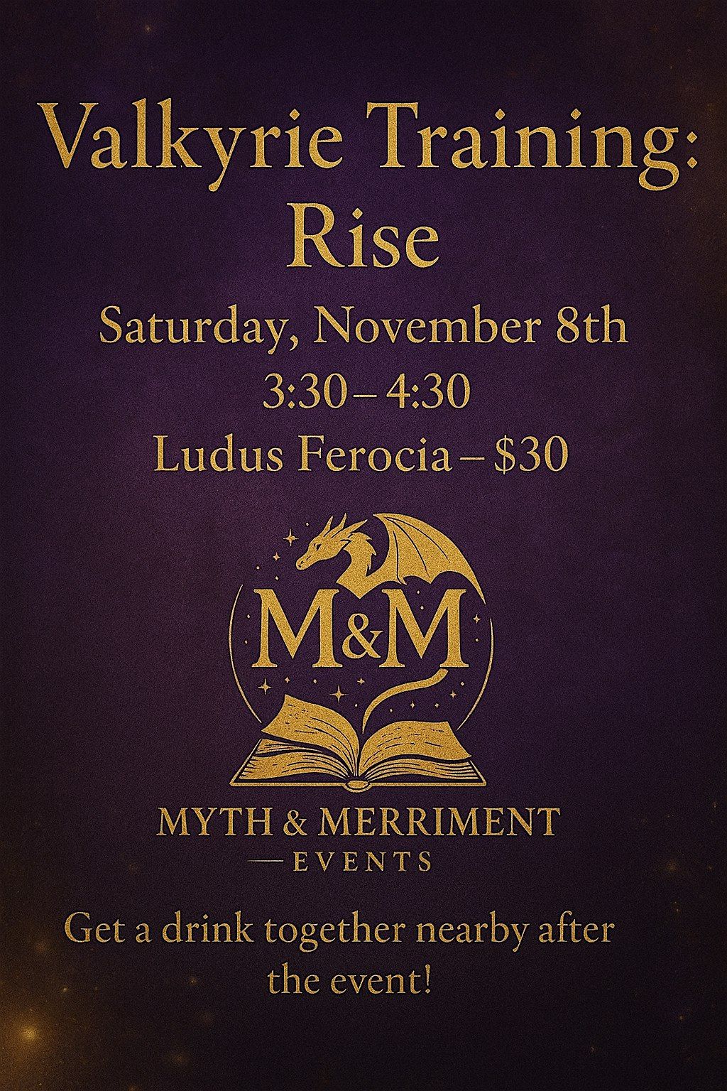 Come join us at Ludus Ferocia Historical Combat for a day of themed training to unleash your inner warrior with other book lovers! Our Valkyrie Training event guide you through four stations- combat, strength, core, and cardio. Don't miss this opportunity to channel your inner Valkyrie and conquer the battlefield!