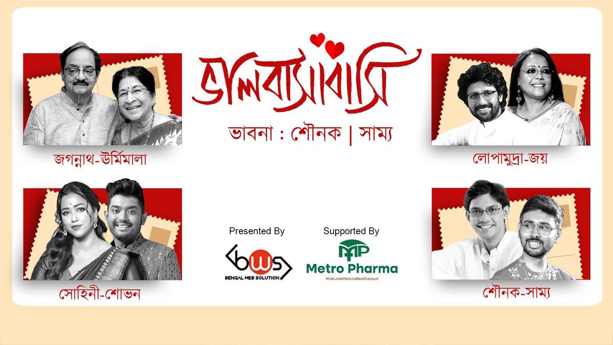 💞 ValobasabasiAn Evening of Poetry & Music Celebrating Love and WordsFeaturing: Jagannath Urmimala | Joy | Lopa | Sohini | Sovon | Samya | ShounakPresented by Bengal Web SolutionSupported by Metro PharmaConcept by Samya & ShounakValobasabasi is a soulful celebration of love in all its expressions—spoken, sung, remembered, and felt.This thoughtfully curated evening brings together poetry, music, and heartfelt narratives, where verses flow into melodies and words transform into emotions. Through original compositions, timeless poems, and evocative musical moments, the artistes take the audience on an intimate journey through love—its tenderness, longing, joy, separation, and hope.Each performance blends spoken word and music, creating a warm, immersive atmosphere that allows the audience to pause, reflect, and reconnect with emotions that often remain unspoken.Whether it is the nostalgia of first love, the comfort of companionship, or the ache of separation, Valobasabasi speaks to every heart that has ever loved.✨ A celebration of words✨ A tribute to love✨ An evening to feel, remember, and belongCome, be part of a night where love finds its voice.