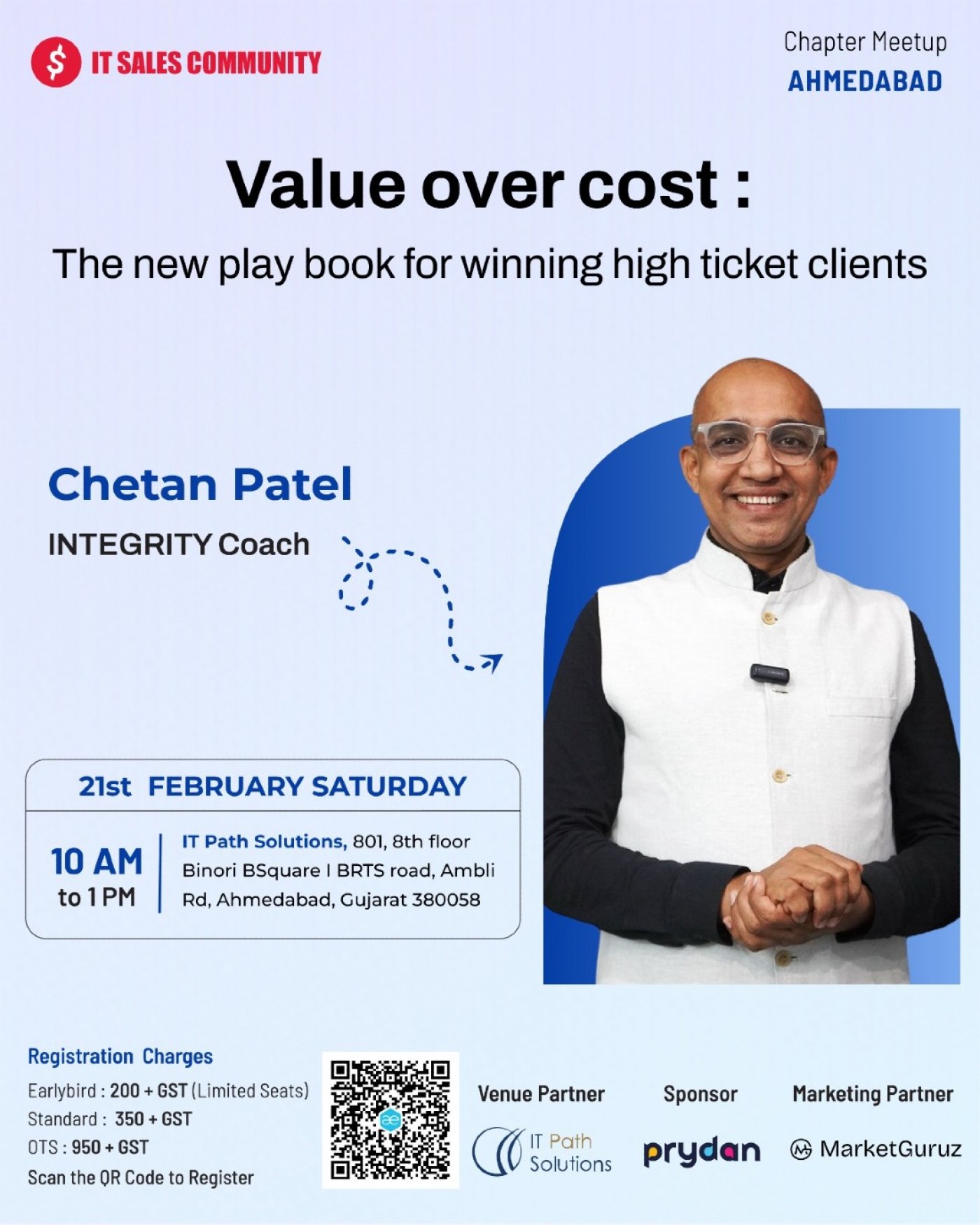 #ITSalesCommunity #AhmedabadMeetup #ValueOverCost #B2BSales #HighTicketSales #ITServices #SalesLeadership #SalesGrowth