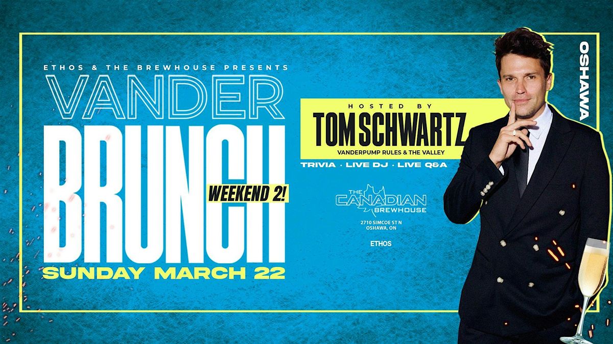 Sunday March 22 - Tom returns to Oshawa! Join HUNDREDS of Vanderpump fans as we eat, sip, dance, and socialize with our closest inside The Brewhouse!