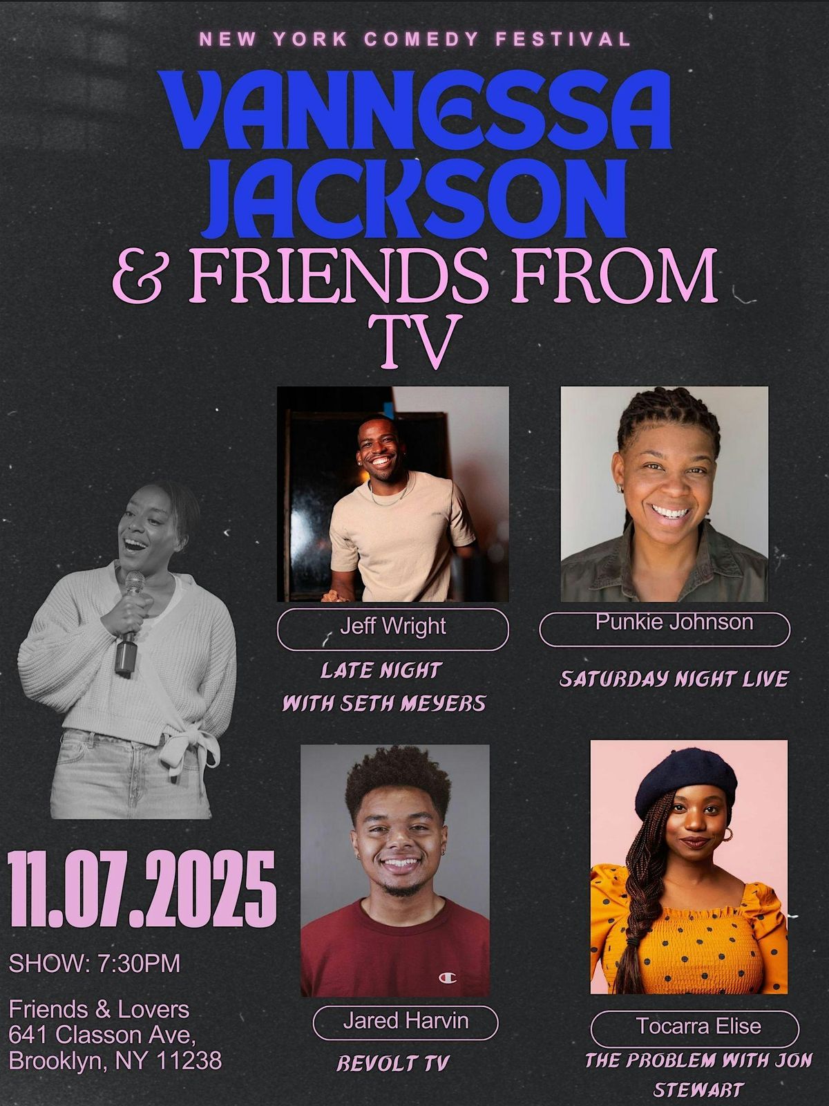 Vannessa Jackson is a standup comedian and TV writer with credits on Saturday Night Live, A Black Lady Sketch Show and Colbert. The show will feature Vannessa running her brand new half-hour alongside an all star lineup of comics including Saturday Night Live's Punkie Johnson, Late Night with Seth Meyers' Jeff Wright & more familiar faces!
