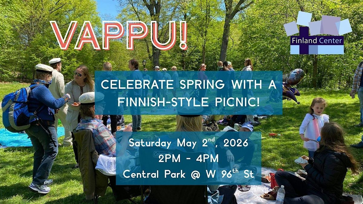 Join us in Central Park for a Vappu picnic celebration on May 2, 2026 from 2 PM - 4 PM!