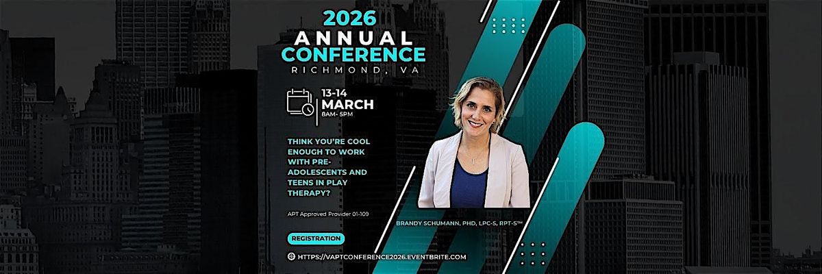 CONTINUING EDUCATION: This program is co-sponsored by the Virginia Association for Play Therapy and The Institute for Continuing Education. The program on March 13-14, 2026, offers a total of 12.00 CE hours (6.00 hrs. per day). Full attendance is required for the days you attend. The CE processing fee is $30.00 (includes both days), payable with the return of completed CE documents. CE application forms and other materials will be available online. If you have questions regarding the program, continuing education, learning objectives, faculty, or grievance issues, contact The Institute at: 800-557-1950 / email: [email protected]