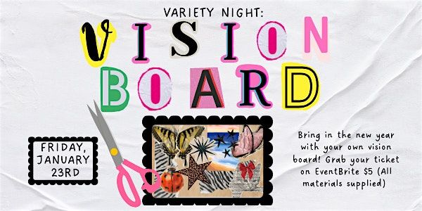 Including poster board, magazines, glue, scissors, and assorted decorations. Each attendee may curate one document of images to be printed at the shop.