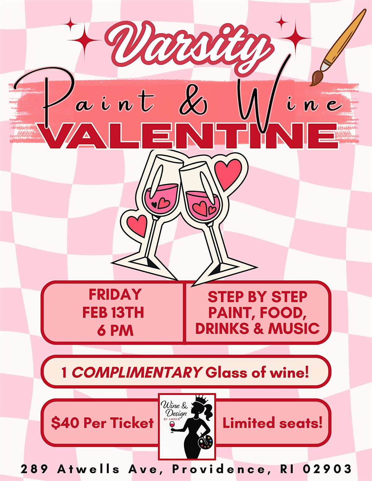 Looking for the perfect Valentine Weekend Plans? Join us at Varsity for a fun, creative, connection: Valentine's Paint & Sip - unleash your creativity and sip Luxury Crafted Cocktails as your inner artist creates a masterpiece on canvas. No experience necessary, whether you're coming with your partner, friends or flying solo, this experiene is all about the good vibes & creativity with all the supplies you need. Step by Step Painting with Wine & Design, by Amber.