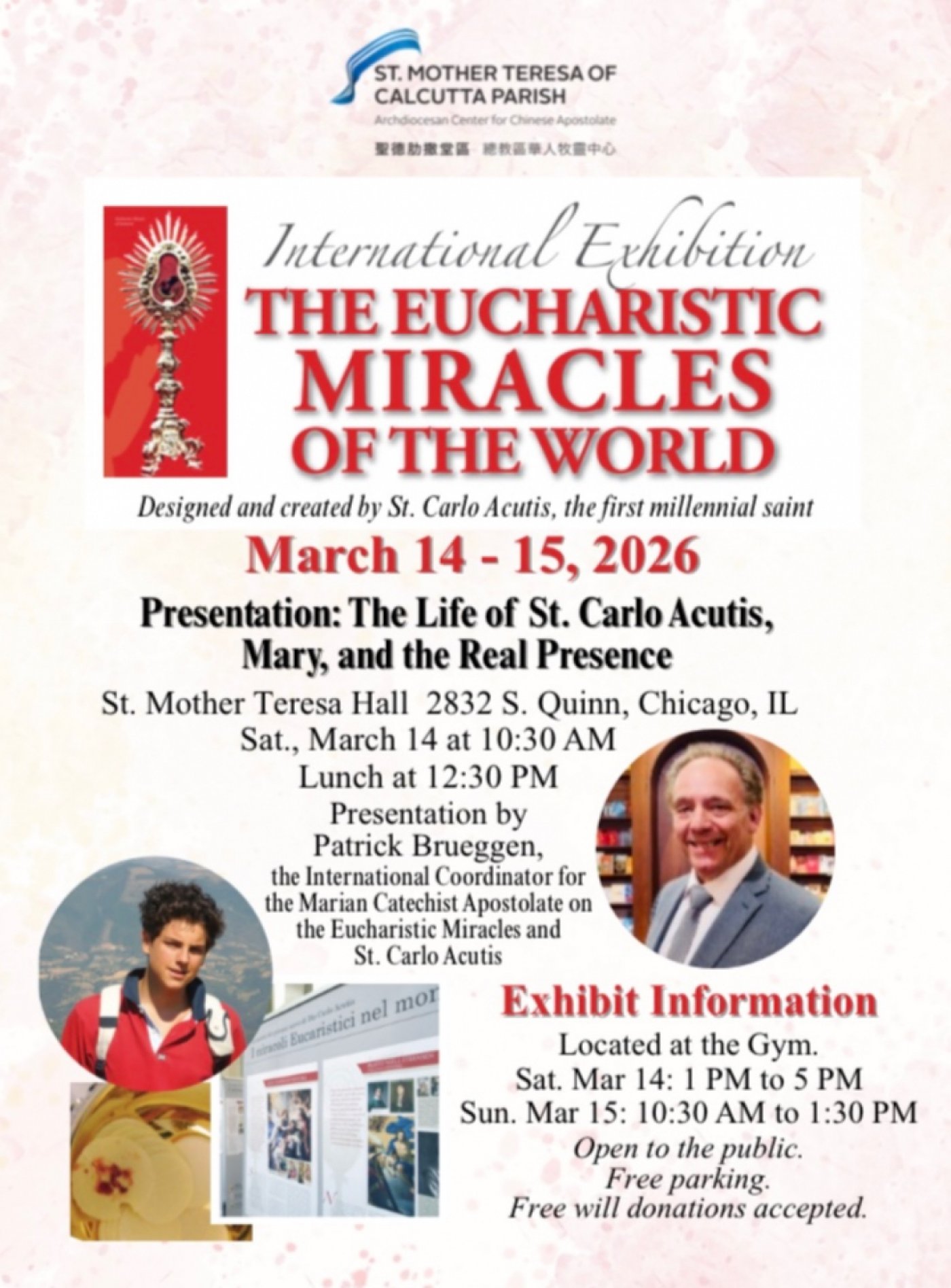 St. Mother Teresa of Calcutta Parish will be hosting this special 2-day exhibit on Saturday, March 14, 2026 from 1pm to 5pm and on Sunday, March 15, 2026 from 10:30am to 1:30pm in the Gym.