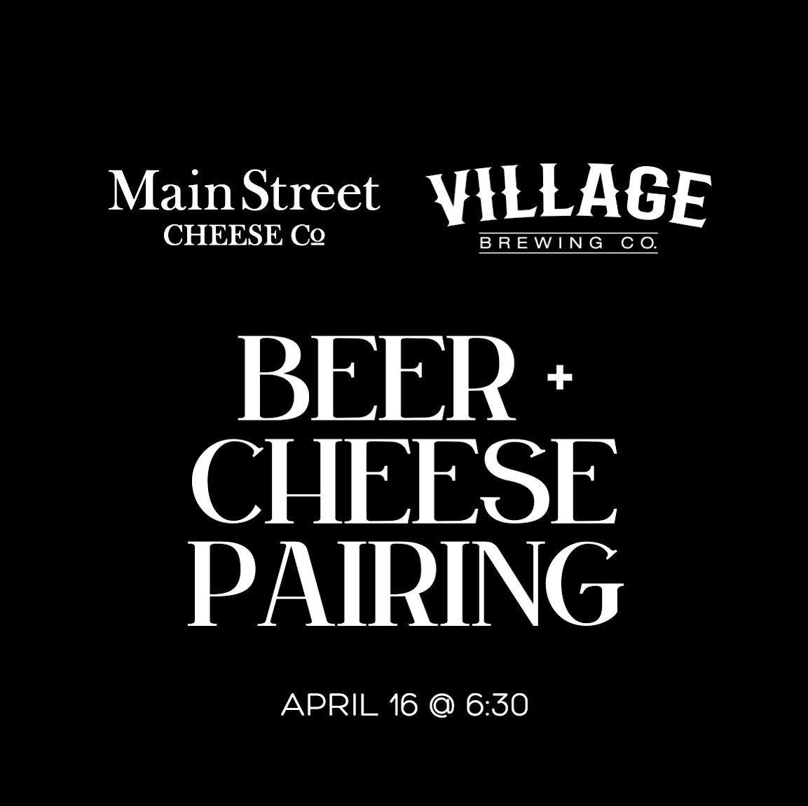 Village Brewing Company is teaming up with Main Street Cheese to bring you a curated beer and cheese pairing experience designed to surprise your palate and change the way you think about both.