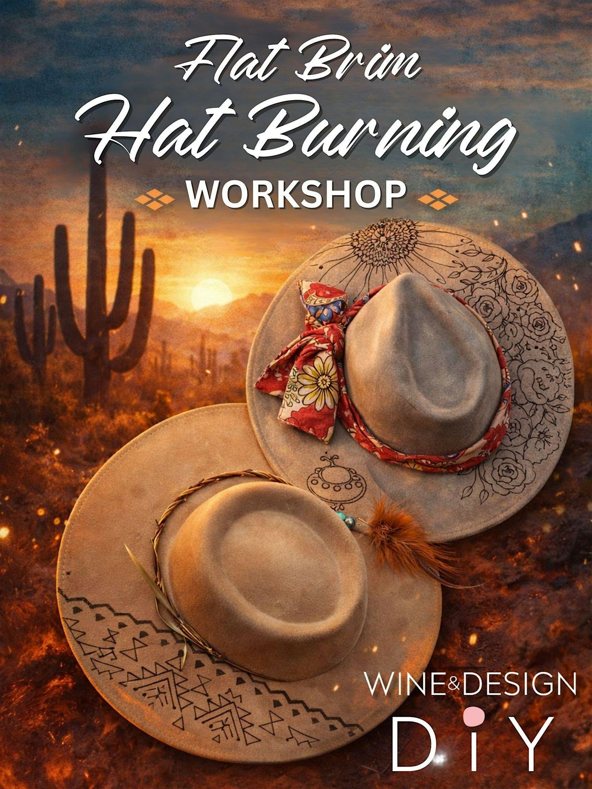 Join us in creating your very own stencil burned hat. In this class you will use stencils of your choice to help guide you as you burn into your vegan suede, wide flat brim hat. You will learn which tools to use to transfer from a stencil or if you choose, to freehand design.