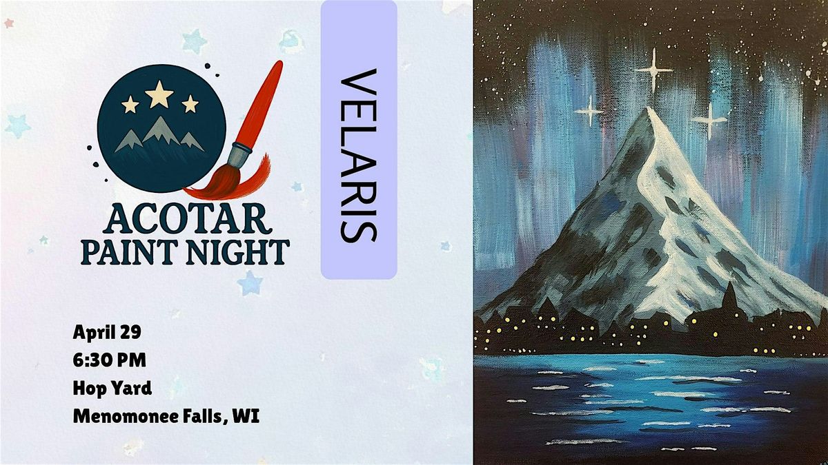 Join us for a super fun in-person paint night inspired by the magical world of ACOTAR! Whether you're a fan of the books or just love to get creative, come unleash your inner artist as we bring Velaris to life on canvas.