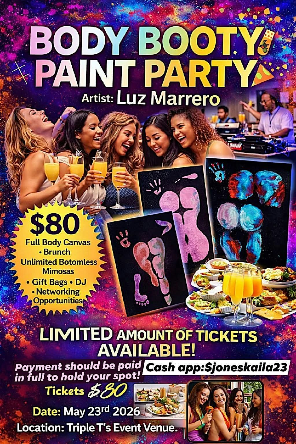 Get ready to unleash your creativity at the Velvet Beauties Booty Paint Party! Join us in person for a fun-filled, artsy bash where you can express yourself with vibrant colors and good vibes. Bring your friends, your smiles, and your boldest attitude—it's all about celebrating beauty and having a blast. Don't miss out on this unique experience that’s equal parts messy and magical! Painting starts at 6pm