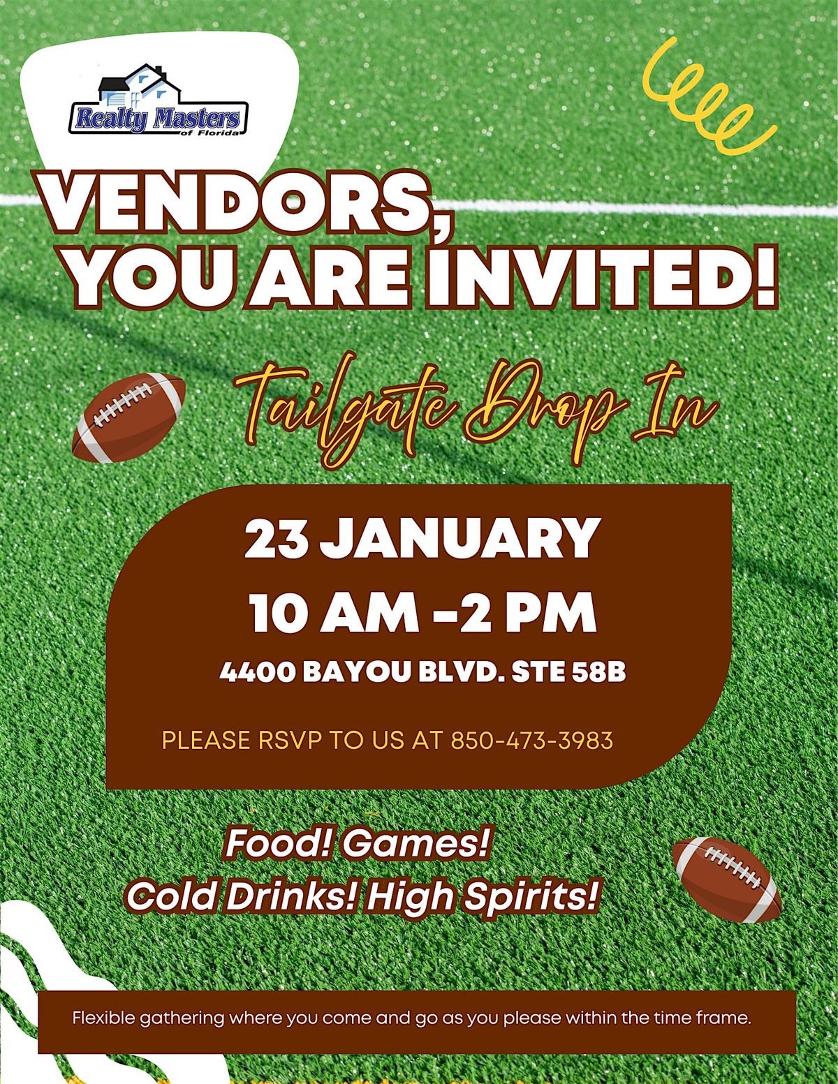 Realty Masters Property Management is excited to host a Vendor Tailgate Party as a thank-you to the incredible vendors we’re grateful to work with throughout the year. This is our way of showing appreciation for your hard work, reliability, and partnership.