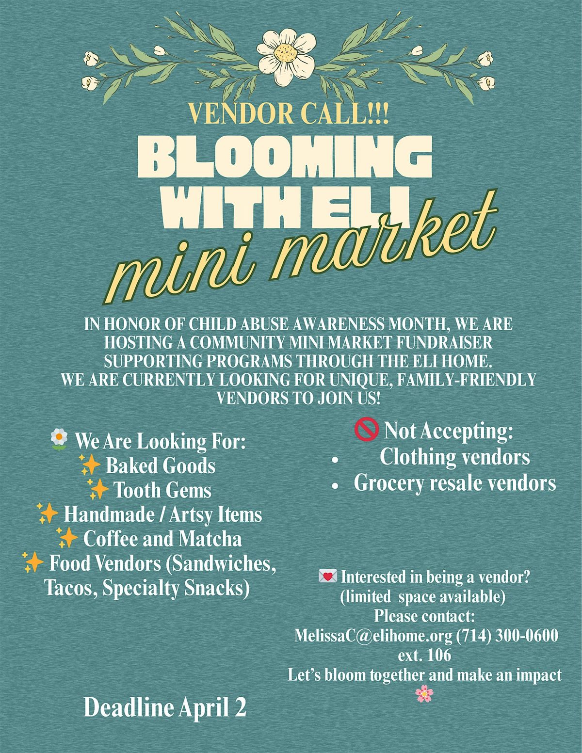 Vendor Call!! Blooming with Eli Mini Market