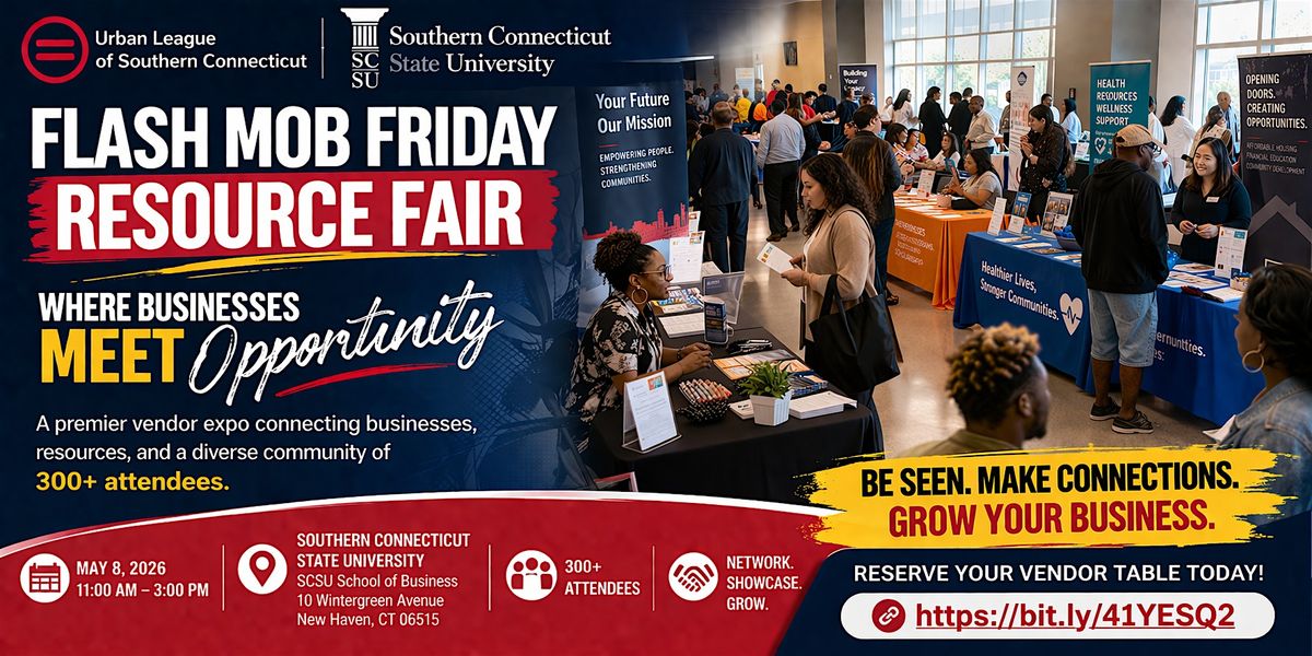 Flash Mob Friday Small Business Resource Fair, hosted in partnership with the City of New Haven, Southern Connecticut State University School of Business, and the Urban League of Southern Connecticut.