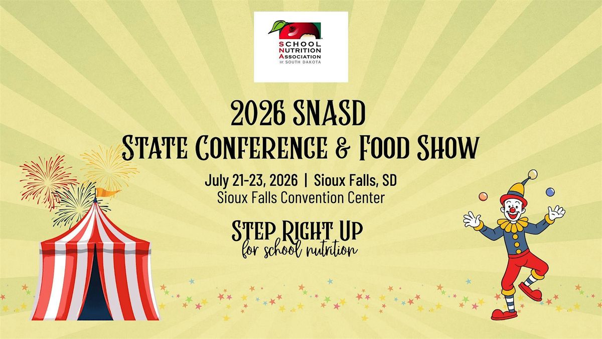 Join us under the big top to connect with School Nutrition Professionals from across the state at the annual School Nutrition Association of South Dakota Conference, to be held July 21-23 at the Sioux Falls Convention Center in Sioux Falls, SD. We invite you and your sales representatives to attend the conference and/or vendor food show to network, educate, and share your products!