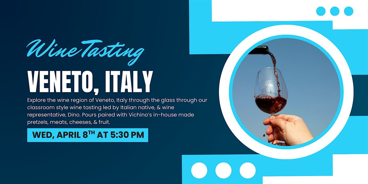 Join us at Vichino’s for a special journey through the wines of Veneto, one of Italy’s most celebrated wine regions. Guiding us through the evening is our good friend Dino, Italian native and wine import representative, who will share stories, culture, and insider knowledge straight from the vineyards of northern Italy.