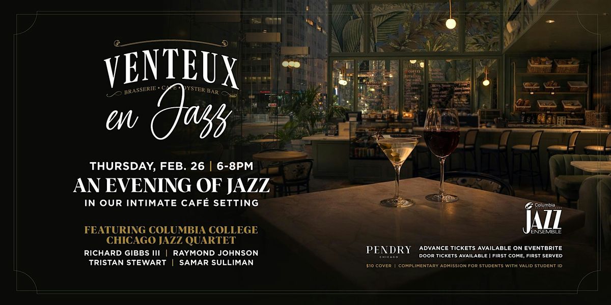 Venteux en Jazz | Live Jazz NightJoin us for an evening of live jazz in the cafe, featuring a quartet from Columbia College Chicago!