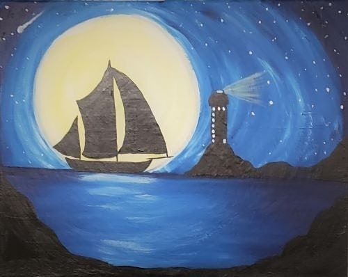 Venture out with our Moonlight Sail paint and sip painting event.