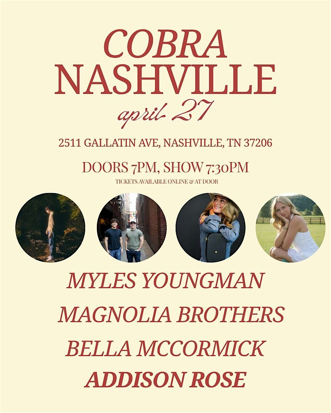Venue: Addison Rose | Bella McCormick | Myles Youngman | The Magnolia Broth