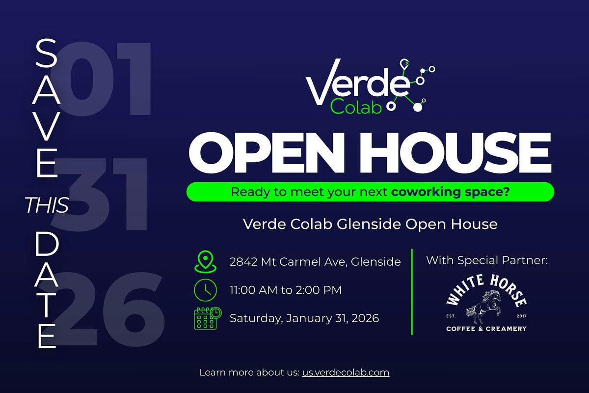 Coffee and breakfast will be provided from our local partner White Horse Coffee & Creamery, complimentary Verde Colab merch, and attendees will have the chance to participate in a raffle featuring Philadelphia 76ers tickets and signed Philadelphia Phillies and Eagles memorabilia. We will also offer a brief tour of the space, where you can meet current Verde Colab members and learn more about their work and community.