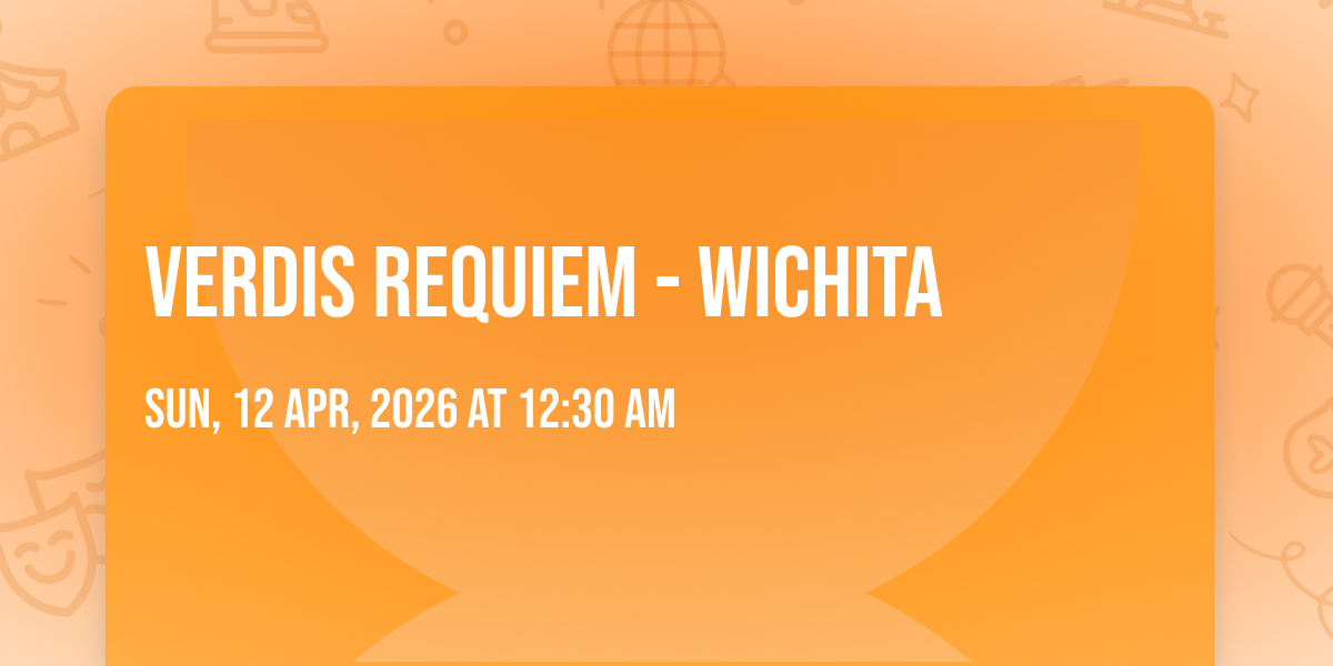📍 Location: 37.6853, -97.3405🌟 Be part of history at Verdis Requiem - Wichita, an extraordinary gathering that will captivate your imagination! 🏛️ The prestigious Century II Performing Arts and Convention Center in Wichita, KS sets the stage for an unforgettable experience on April 12th, 2026 at 12:30 AM. ✨ They are bringing together the finest elements of entertainment and innovation to create moments that will take your breath away. From the moment you arrive, you'll be immersed in an atmosphere of wonder and excitement. 🎯 This carefully planned event ensures every guest experiences something truly special. 🎊 Early booking is recommended for this must-attend event of the season!