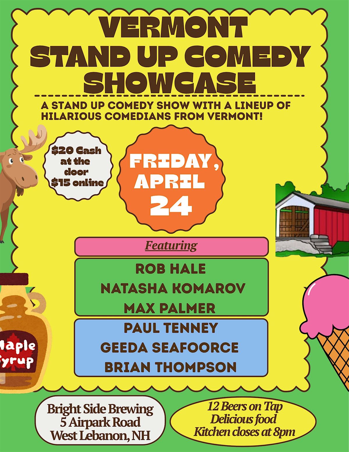 A stand up comedy show with a lineup of hilarious comedians from Vermont!
