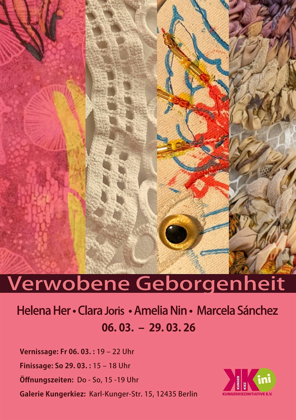 Die gezeigten Werke eint die Idee einer verwobenen Geborgenheit: einer Geborgenheit, die nicht gegeben ist, sondern entsteht durch Nähe, durch Sorgearbeit, durch das Verbinden von Fragmenten unterschiedlicher Herkunft. In den Textilien materialisieren sich Körperwissen, generationsübergreifende Praktiken und persönliche Geschichten. So wird das Textile zum Raum des Schutzes und der Beziehung, in dem Verletzlichkeit und Stärke untrennbar miteinander verflochten sind.