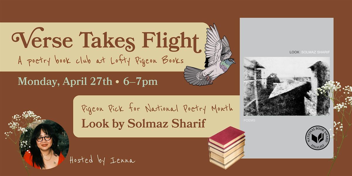 It's our inaugural book club at Lofty Pigeon Books—just in time for National Poetry Month! We'll read and discuss Look, Solmaz Sharif's incisive and relevant collection from 2016 that examines the impact of war on our everyday lives.
