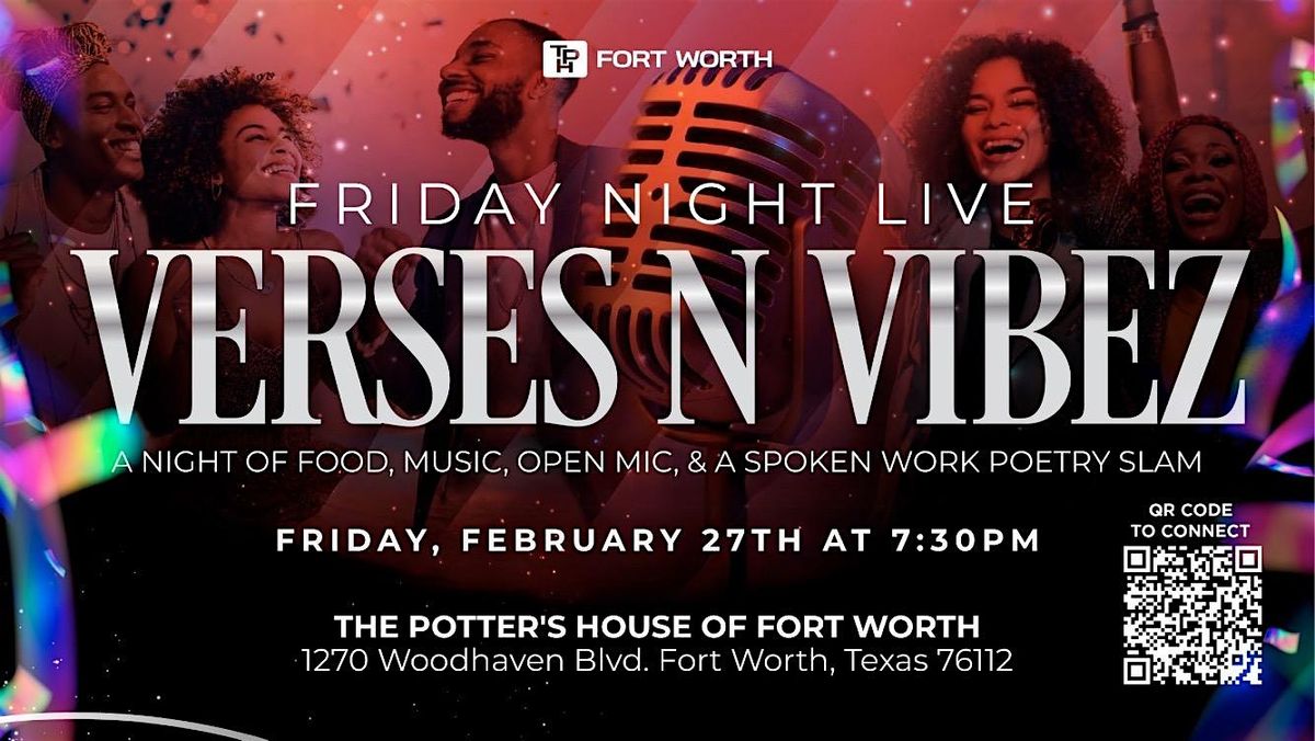 VERSES & VIBES On Friday, February 27, the Potters House in Fort Worth will host the second annual Verses and Vibes Gospel Spoken Word Competition, organized and presented by Mike Guinn Entertainment in collaboration with the Pat's House Fort Worth Friday Night Live series. Featuring Dr. Phea Kennedy . This event will feature poets who will express their heartfelt messages in a welcoming environment, complemented by food vendors, an open mic session, and live music. 7-9 PM and it’s free to the public..