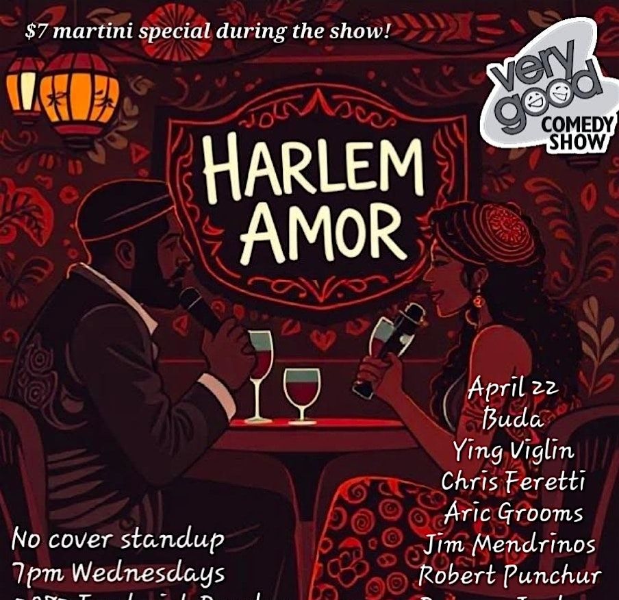 Very Good Comedy brings some of NYC's very goodest standups to Harlem Amor for a pay-what-you-want showcase! with $7 martini specials.