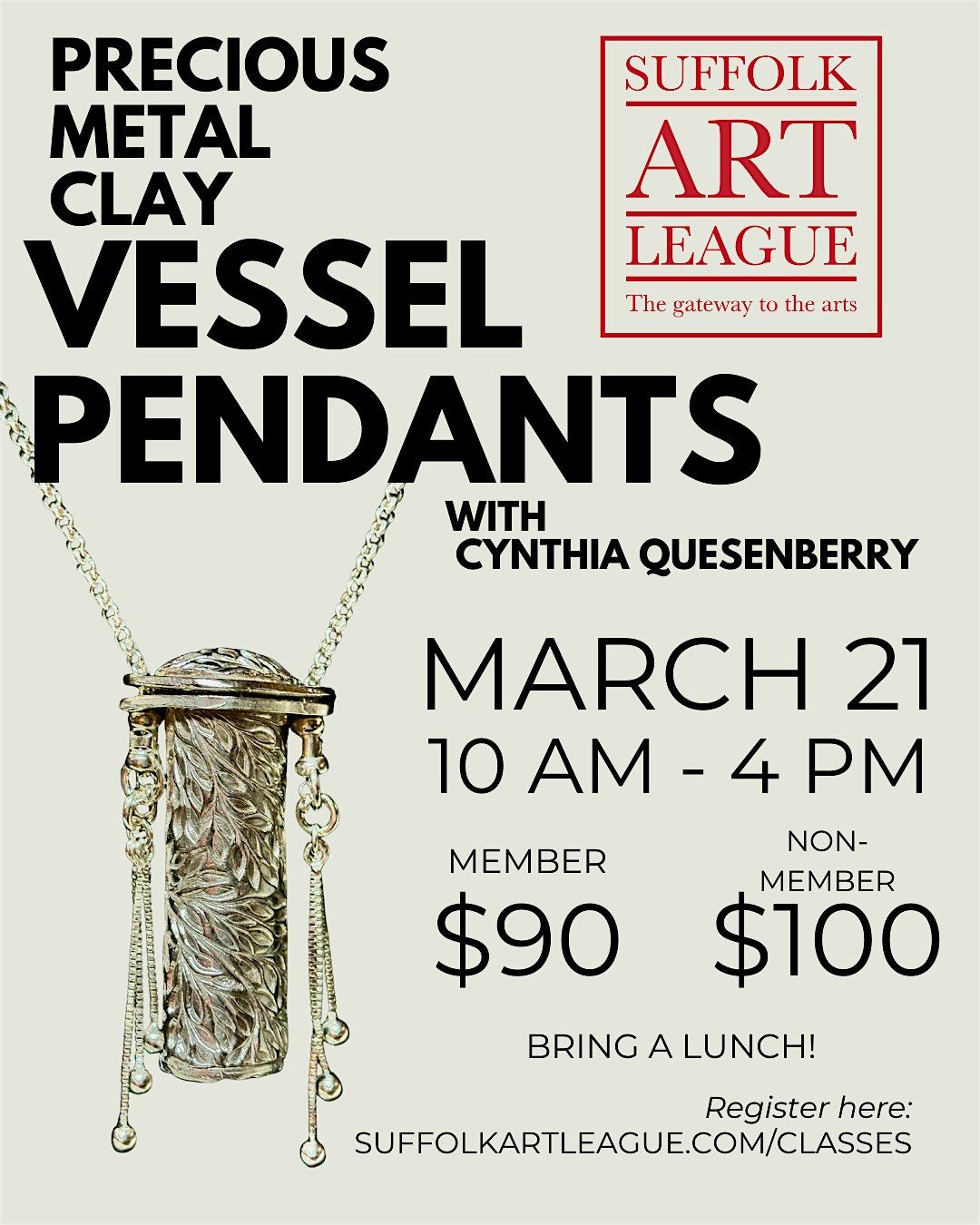 Join us for another Art Clay Silver workshop! This time we will make vessel pendants using a variety of tools and techniques. All levels welcome, materials included, ages 14+