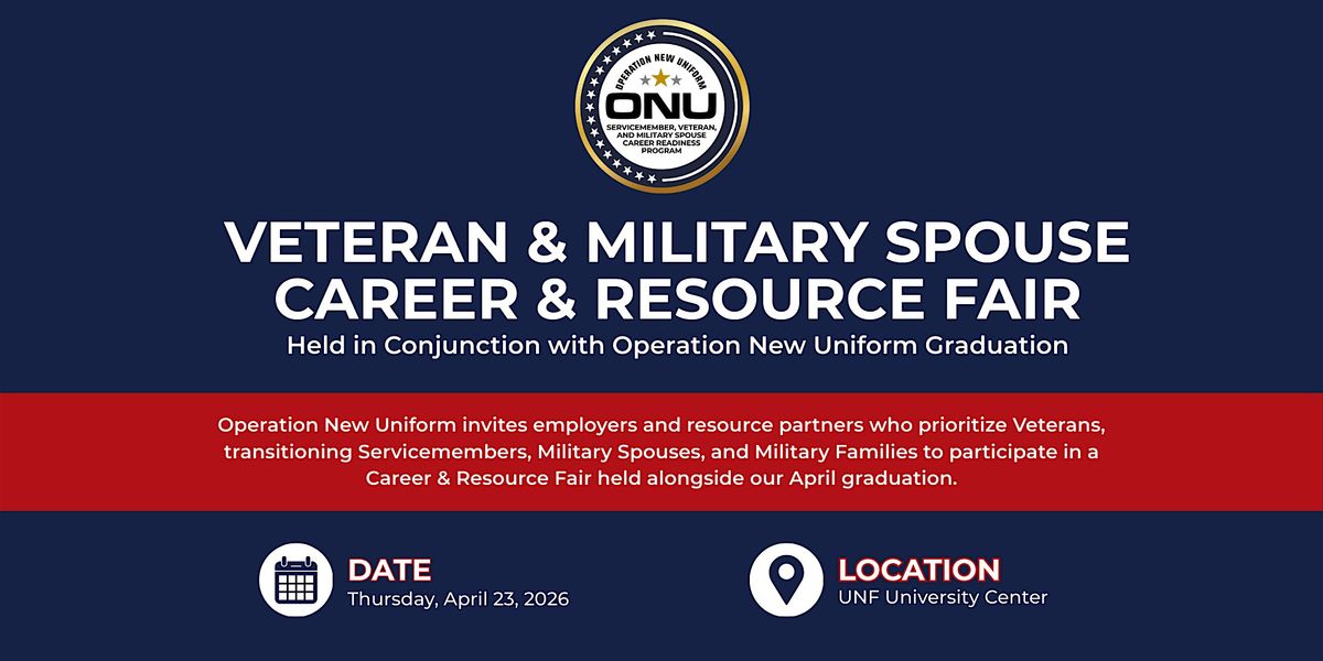 Operation New Uniform invites employers and resource partners who prioritize Veterans, transitioning Servicemembers, Military Spouses, and Military Families to participate in a Career & Resource Fair held alongside our April graduation.